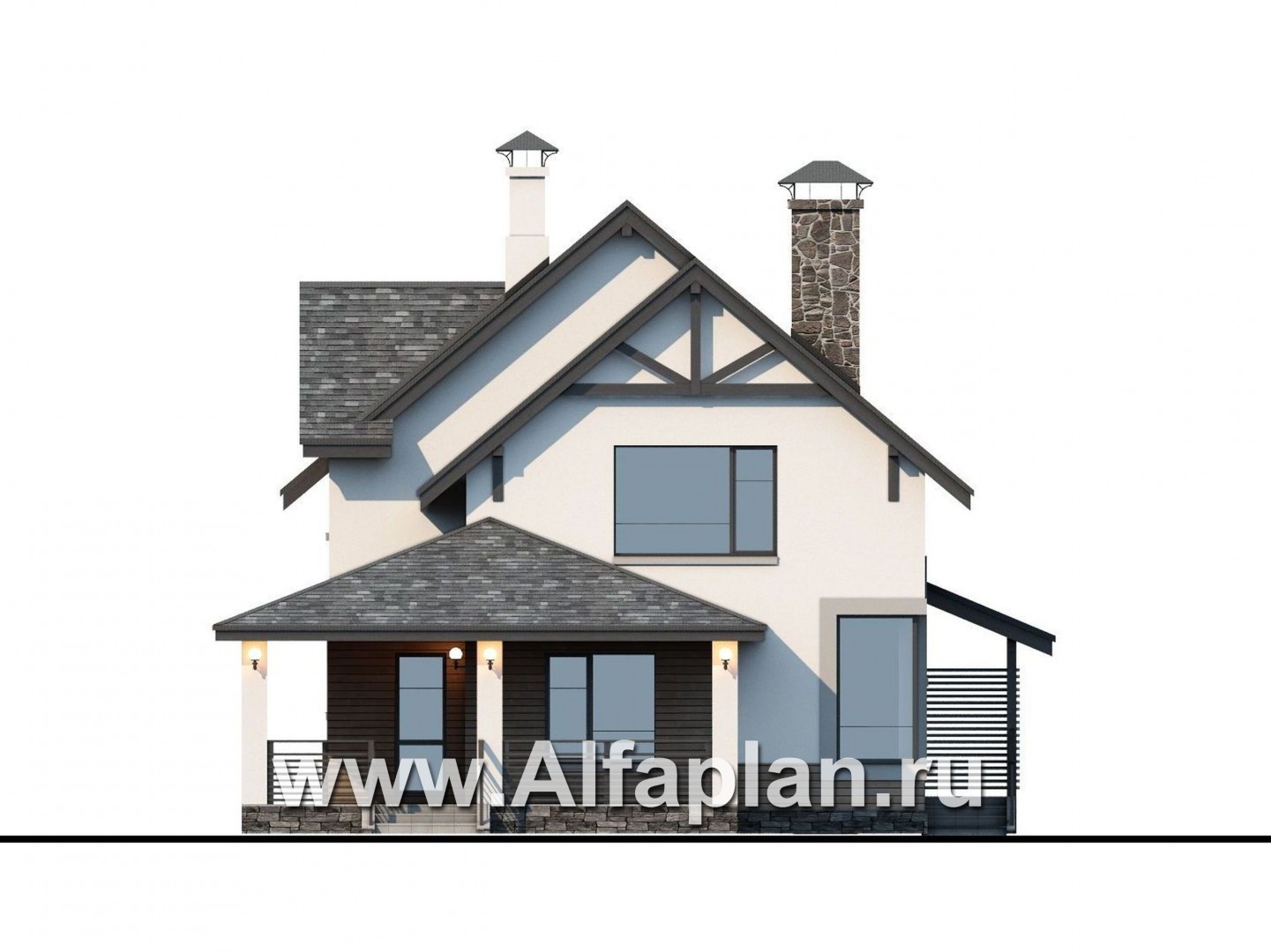 194A-S «Роза ветров» - проект двухэтажного коттеджа из газобетона, с террасой и с летней кухней, загородный дом в скандинавском стиле