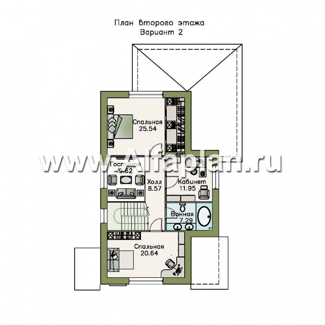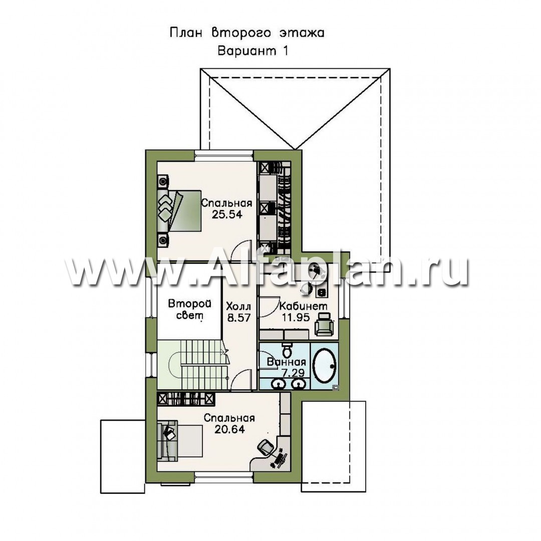 Это проект мансардного дома, т.е второй этаж имеет не полноценную высоту по все площади потолка, уклон потолка начинается на высоте 1.9 м от пола при полной высоте 2.7 м.